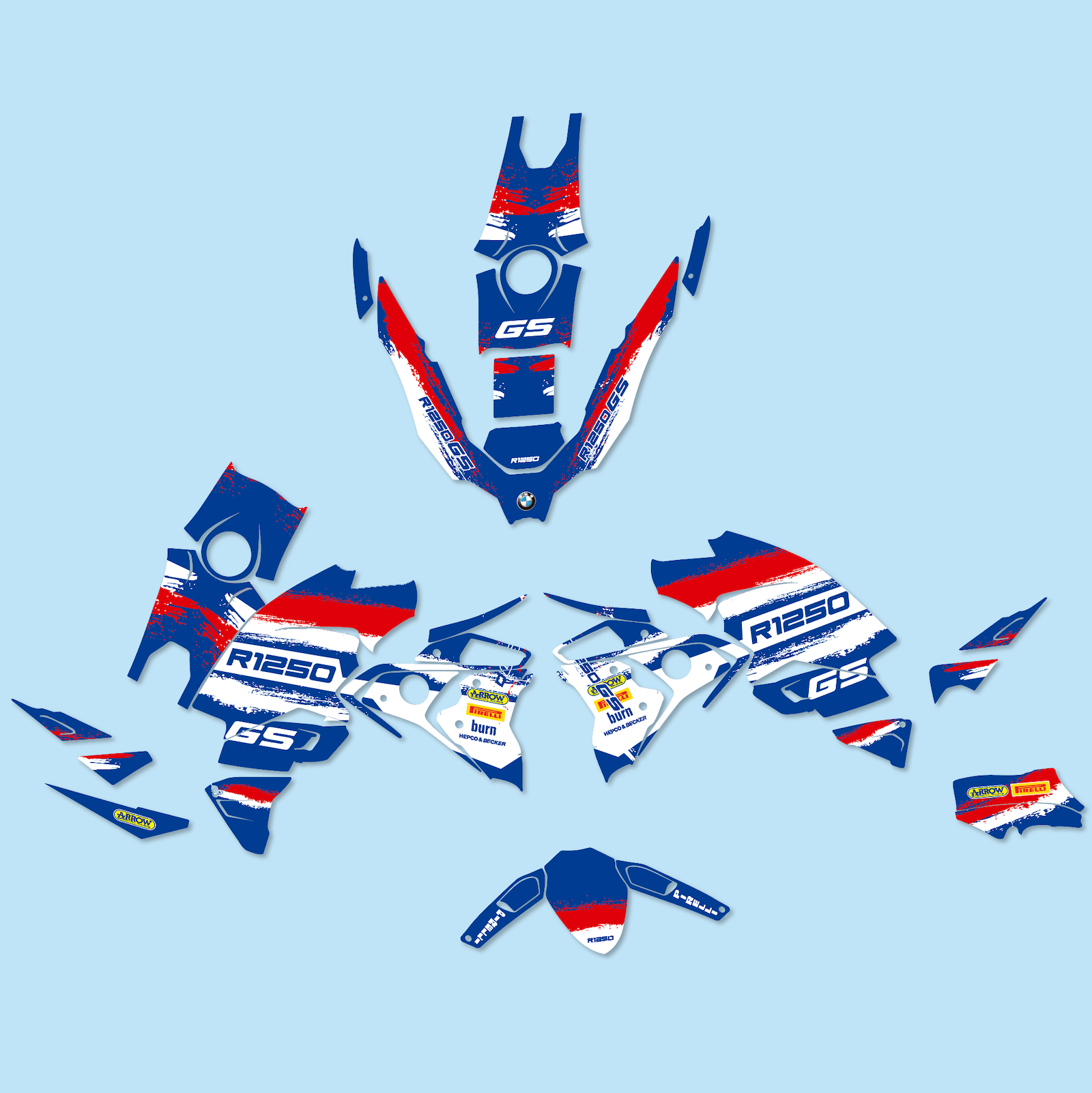 Verleihe deiner BMW R1250 GS einen einzigartigen Look mit diesem hochwertigen Dekor-Kit. Speziell entwickelt für Modelle von 2019 bis 2023, inklusive Adventure-Version. Die Grafiken bestehen aus widerstandsfähiger Vinylfolie mit UV-Schutzlaminat – ideal für anspruchsvolle Abenteuerfahrten.